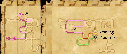 Esta es una mision larguisima dividida en dos partes que variaran dependiendo de que ciudad visites primero. Sugiero tener completada la quest de Sub-Job antes de intentar esta mision. Tambien se aconseja tener la licencia para chocobos y los mapas de Palborough Mines / Ghelsba / Giddeus. Ademas tener los mapas de las ciudades principales es una buena idea. Despues de hablar con el guardian de la puerta habla a Kupipi en Heaven's Tower (Windurst Walls). Ella te explica la mision. Puede que te apetezca comenzar la quest "Rock Racketeer" de Windurst antes de dejar la ciudad. Despidete de Windurst, no volveras en una larga temporada. Bastok - The Palborough Mines La embajada Windurstiana esta localiza encima de los Metal Works. Habla con el embajador (Ambassador) para recibir esta parte de la mision. Ahora dirigete a la President's Office (K-8) para hablar con Pius y aprender la importancia de la Mithril Sand para los beastmen (hombresbestia). Finalmente, reunete con Grohm en el Metalworks Crafsmen's Eatery donde te dira el protocolo y los sucesos en las Palborough Mines. Antes de salir puede que quieras comprar algunas "pickaxes" de la tienda de objetos (H-7) en Bastok Mines. Ademas compra un mapa de las minas en Bastok Markets. Dirigete a Palborough Mines (North Gustaburg, K-3). Despues de entrar ve a I-8 u usa el ascensor para llegar al segundo piso. Ahora dirigete a K-9 en el mapa. Encontraras un Spot alli donde puedes cavar. Dale a trade al Spot y dale una "pickaxe". Puede que falles unas cuantas veces, asi que continua intentandolo hasta que obtengas un item. NOTA: Este es el mismo Spot que para la quest Rock Raketeer. Despues de obtener el item ve al segundo nivel al medio del mapa (I-6) por la zona del lado derecho del mapa. Veras una maquina con una tapa y una palanca. Haz Trade del item que obtuviste con la tapa y tira de la palanca. Continua el camino hacia la parte izquierda del mapa, por la zona debajo de la maquina. Veras una palanca alli tambien. Tira de ella y recibiras un item. Vuelve a la embajada y haz Trade del item al embajador. San d'Oria - The Dragon En Northern San d'Oria dirigete al consulado de Windurst. Lo primero de todo, habla con el embajador. Te dira que hables con Halver en el castillo Chateau d'Oraguille. Necesitaras el mapa de Ghelsba Outpost. De paso puede que quieras empezar la quest "The General's Secret" que te da Curilla que esta en Temple Knights' Quarters en el Chateau d'Oraguille. Ya que el agua se encuentra al final de esta mision. Para prepararte asegurate de tener una party completa y que estais listos para luchar con el dragon. Si alguno es de mas level que 25 aseguraos que llevan equipo para menores de 25 porque seran rebajados de nivel para luchar con el Dragon. Dirigete a Fort Ghelsba y ve todo el camino hacia arriba. Hay algunas chozas, detrás de las cuales esta el tunel que se adentra en las montañas. En el Fort Ghelsba necesitaras entrar en una de las chozas en J-8 para llegar al ultimo area - otro "Grotto". Una vez llegues a la cima de las montañas hay dos salidas - una al circulo en llamas y la otra al manantial para la quest "The general Secrets" Preparate para entrar en el circulo en llamas. Hay dos mostruos, un ojo flotante (¿Contemplador?) y el dragon. No te molestes en echarte hechizos ni habilidades de potenciacion porque el dragon las quitara todas en los primeros segundos. Mata primero al Ojo flotante y despues al dragon. Una vez hecho estas sentado en el manantial, curate y dirigete de vuelta al consulado de Windurst y recoge tu Adventurer's Letter. Finalmente vapuleado pero desafiante, dirigete de vuelta a Heaven's Tower en Windurst para recibir tu bien merecida recompensa. ¡¡Enhorabuena por el rango 3 y los 3000 Gil!! ![]() Sigue la linea violeta (sabras lo que son los squiggles cuando llegues a estos sitios). Nada a lo largo de este camino es para mayores de level 10 asi que si tienes level 16 o mas dudo que tengas problemas. Cuando llegues a A ve al segundo mapa (piso 2) donde se marca con una A. Donde se marca con una linea roja es donde los mobs te suben hasta level 15-17 o asi, seran demasiado debiles mas alla de level 20, los quadavs son pateticos y no deberias tener ningun problema incluso siendo un ladron. Sigue el camino rojo y llegaras a la maquina, mete el ore y tira de la palanca, ve por la linea verde hasta la otra parte y tira de la otra palanca. Obtendras la arena y puedes volvera hablar con el Consul en San D'oria Esta mision no puede saltarse Mision anterior A Testing Time Siguiente mision To Each his Own Right |